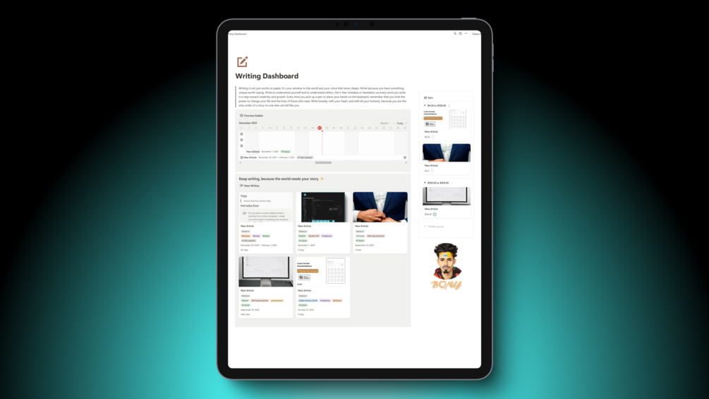 Notion is a comprehensive and fully integrated workspace that simplifies note-taking, task management, project planning, and organization. Designed with versatility in mind, Notion offers a user-friendly interface that facilitates productivity and maximizes efficiency. Whether you're a writer or a project manager, Notion is the ultimate workspace to help you get things done.