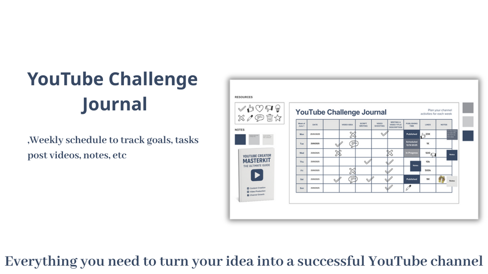 - 30-Day Challenge Journal: Stay consistent, track uploads, and build unstoppable momentum.
