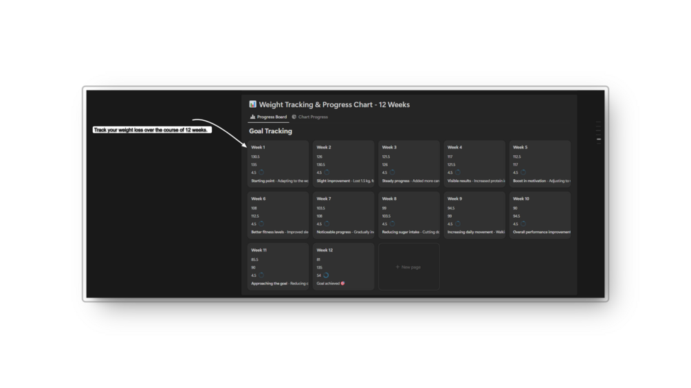 πŸ”Ή Performance Tracking Dashboard: Gain clear insights into your progress week by week.